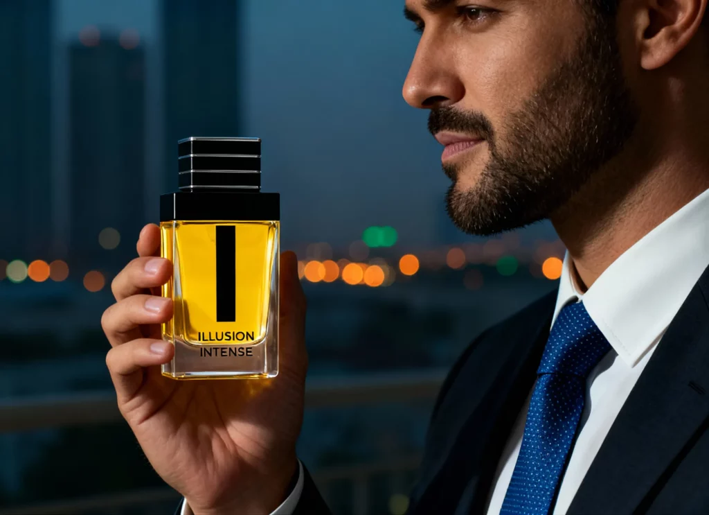 אילוז’ן אינטנס מציע מסע אולפקטורי סוחף ומתוחכם. הבושם פותח עם לבנדר ארומטי שמקנה לו אלגנטיות קלאסית ואצילית. לב הבושם משלב איריס עדין, אמברט החושני וניחוח אגס רענן ופירותי – שילוב מסקרן שמאזן בין פרחיניות לפירותיות. בסיס הבושם מבוסס על ארז וירג’יני שמעניק חום, עומק וגבריות מחממת. אילוז’ן אינטנס מתאים במיוחד לגברים שמחפשים בושם בעל אופי עוצמתי אך מעודן, שמתאים לאירועים רשמיים והזדמנויות מיוחדות. העמידות המרשימה שלו ושובל הריח האלגנטי הופכים אותו למועדף על חובבי בושם ערבי איכותי.