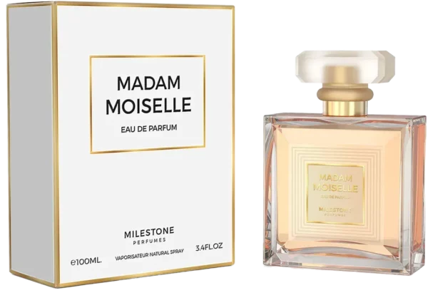 Milestone Madam Moiselle מאדם מוזל מביא את תמצית האלגנטיות הנשית בבקבוק מרהיב. בנוסף, כל תרסיס יוצר מעטפת מושלמת של עידון וחן טבעי. לכן, הבושם הזה הפך לבחירה המושלמת לנשים שמחפשות ניחוח יוקרתי שמשדר ביטחון ועידון.