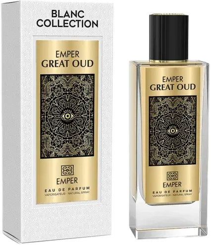 בושם EMPER Great Oud מקולקציית Blanc Collection מגיש חוויה מזרחית מסעירה של עוד יוקרתי. ריכוז מרשים של 33% שמן בושם מבטיח נוכחות עוצמתית ועמידות יוצאת דופן.