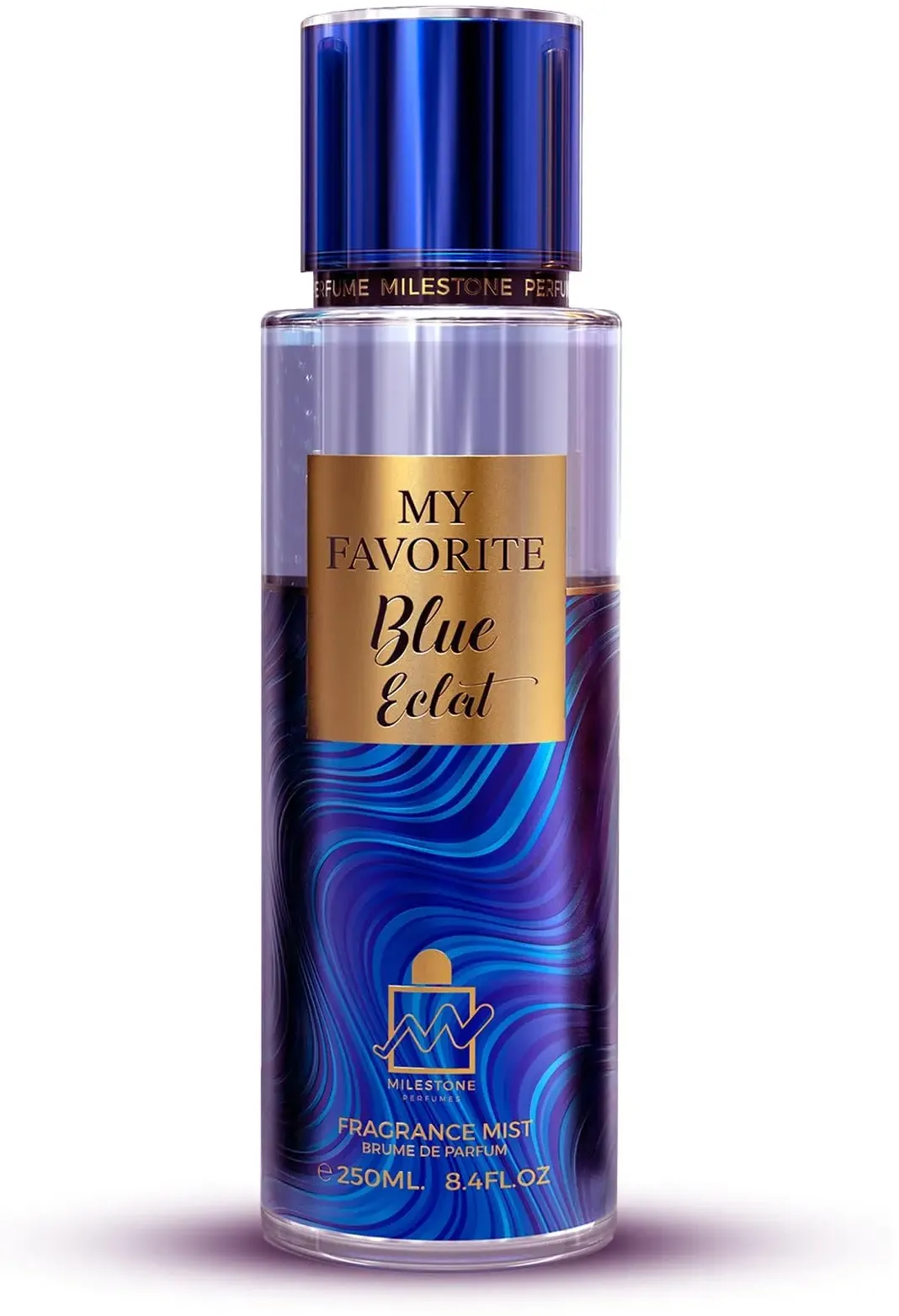 ספריי גוף מילסטון מיי פייבוריט בלו אקלה א.ד.פ 250 מ”ל BODY MIST MILESTONE MY FAVORITE BLUE ECLAT 250ML